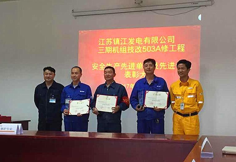 镇江电厂过热器化学清洗项目给公司赢得安全先进单位