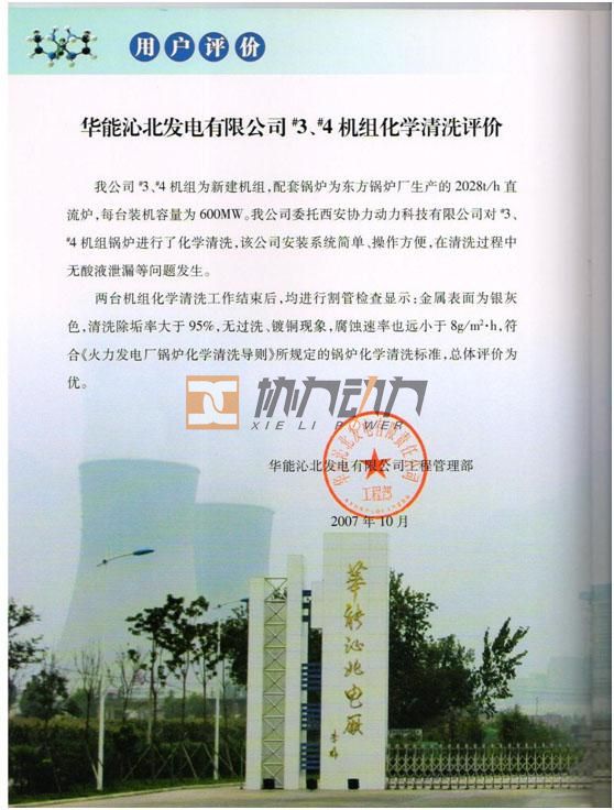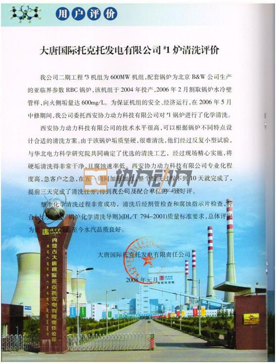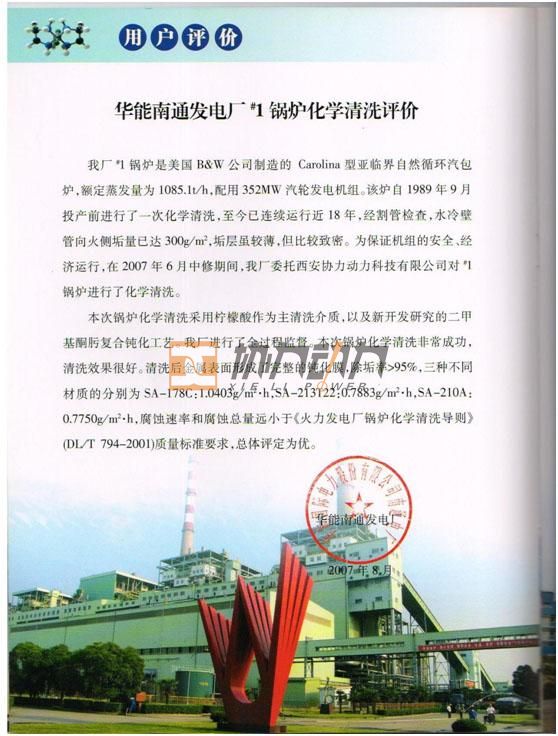 公司在国内外先进缓蚀剂、专用清洗剂的研制和选用方面也投入了大量精力,并开发出性能优良的N-X系列产品,并在全国各地广大电站用户热力设备清洗中投入使用,均达到了优良的清洗效果。