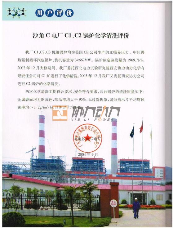 公司近年来通过多台基建、运行机组锅炉清洗的成功实施,已能熟练掌握盐酸、硫酸、硝酸、柠檬酸、氢氟酸、氨基磺酸、EDTA、羟基乙酸及其他清洗介质的清洗工艺。2008年成功研制出适用于各种碳钢、不锈钢和合金钢等材质的有机复合清洗剂,此工艺具有适用范围广、腐蚀小、清洗后机组启动时汽水品质合格快等优点,并于2009年获得国家专利。2007年成功研制出适用于各种清洗介质清洗后的金属复合钝化工艺,该工艺钝化效果好、过程易于控制、温度较低且时间短,可以减轻清洗工程工作量,对化学清洗具有很重要的意义,并于2011年获得国家专利。