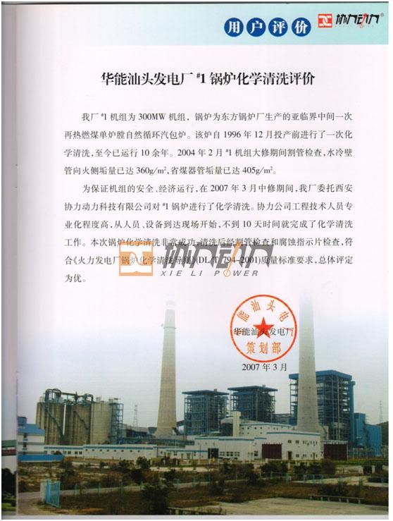 公司现已研制出26套不同型号的移动式化学清洗平台,其使用性能在不断改善,可以根据对压力、温度、流量、浓度及正逆向清洗等的不同要求,满足12MW-1000MW发电机组锅炉、凝汽器及灰管道的化学清洗。自2000年以来,已应用清洗平台对全国上百个火力发电厂1000多台热力设备进行了化学清洗,其中包括国内首台单机容量最大的超超临界机组(浙江华能玉环电厂1000MW、上海外高桥电厂两台1000MW、华能营口电厂两台600MW等)、超临界600MW及以上机组(上海外高桥电厂两台900MW、福建后石电厂、华能铜川电厂、华能沁北电厂等)、亚临界及以上的600MW机组共70余台,清洗业绩遍布国内29个省区。近三年来并开拓了国际市场,在印尼、伊拉克、土耳其及菲律宾、越南等东南亚国家成功开展了化学清洗业务,深受外商好评。(由于篇幅所限单独列出,详见清洗业绩表)